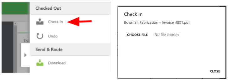 Check Out/In Feature allows a user to be able to mark the document(s) as ‘Checked out’. Checked Out documents will appear in the same user's Work Areas > Checked Out Folder. While document is checked out by a specific user, no other user can check out/in the same document.