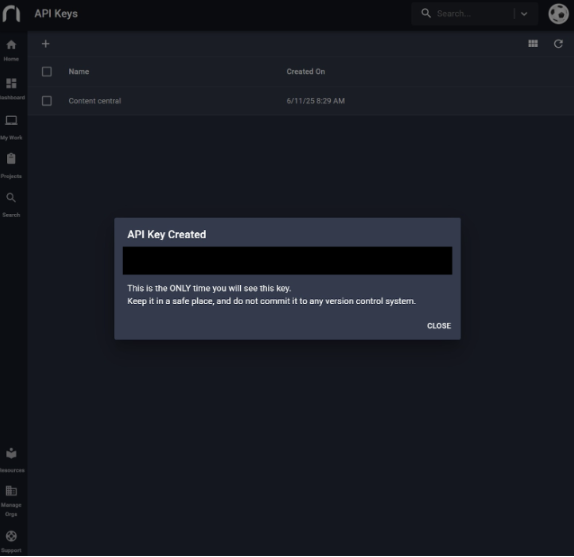 Copy the generated API key for future use.