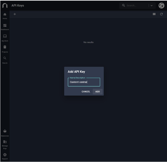 Enter the name or description of the API key to add.