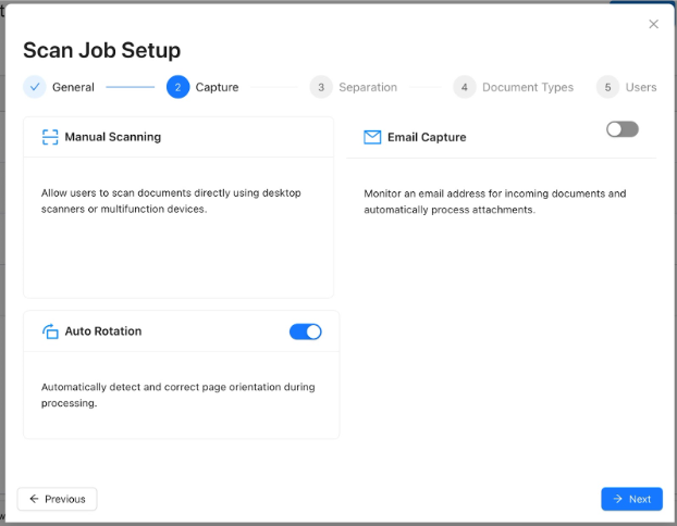 A Scan Job serves as a structured workflow that allows Paige to intelligently identify, separate, and categorize individual documents within a larger batch.
